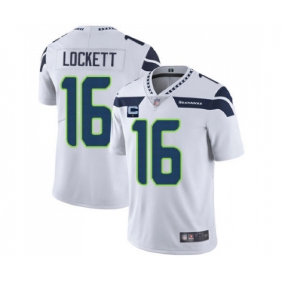 >Men's Seattle Seahawks 2022 #16 Tyler Lockett White With 1-star C Patch Vapor Untouchable Limited Stitched NFL Jersey