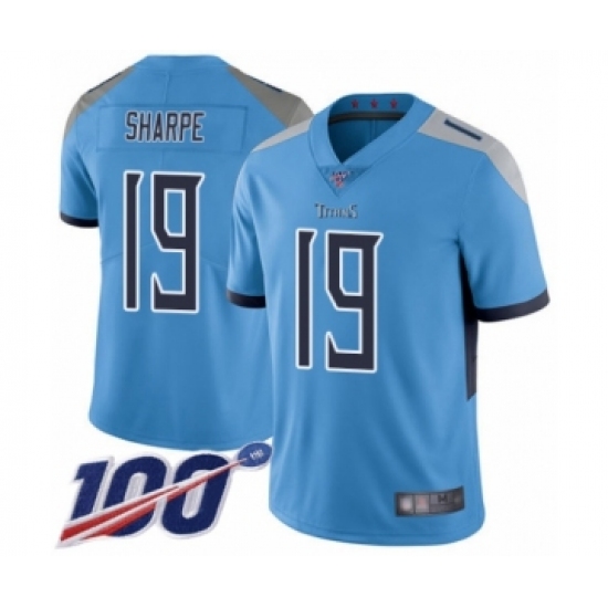 >Men's Tennessee Titans #19 Tajae Sharpe Light Blue Alternate Vapor Untouchable Limited Player 100th Season Football Jersey
