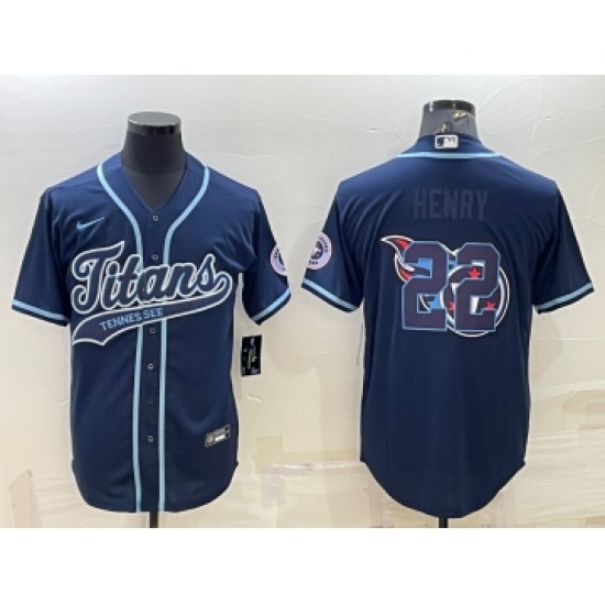 >Men's Tennessee Titans #22 Derrick Henry Navy Team Big Logo With Patch Cool Base Stitched Baseball Jersey