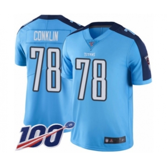 Men's Tennessee Titans #78 Jack Conklin Limited Light Blue Rush Vapor Untouchable 100th Season Football Jersey