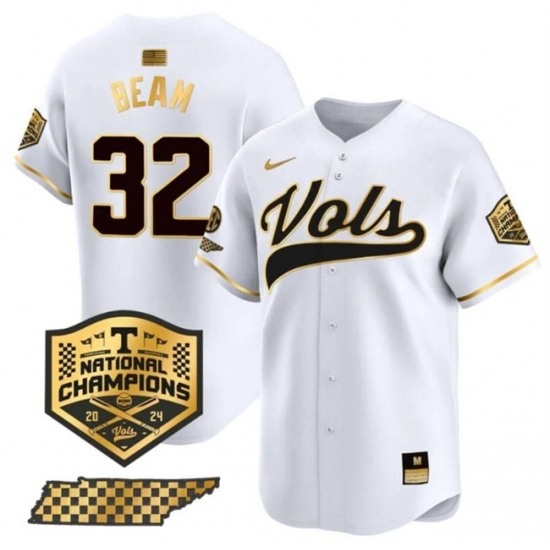 >Men's Tennessee Volunteers #32 Drew Beam White Gold 2024 Champions Vapor Limited Stitched Jersey