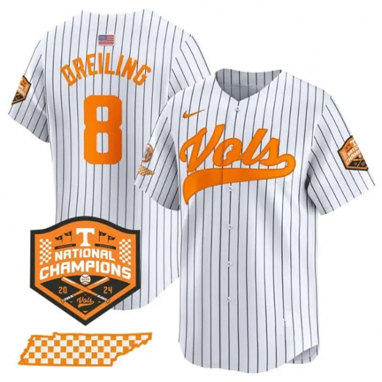 Men's Tennessee Volunteers #8 Dylan Dreiling Pinstripe 2024 Champions Vapor Limited Baseball Stitched Jersey