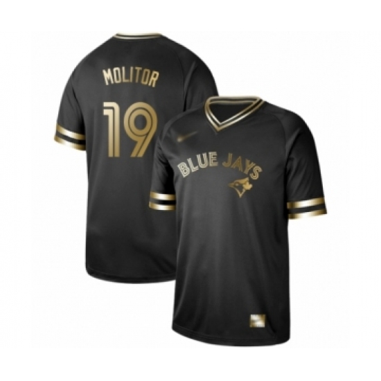 Men's Toronto Blue Jays #19 Paul Molitor Authentic Black Gold Fashion Baseball Jersey