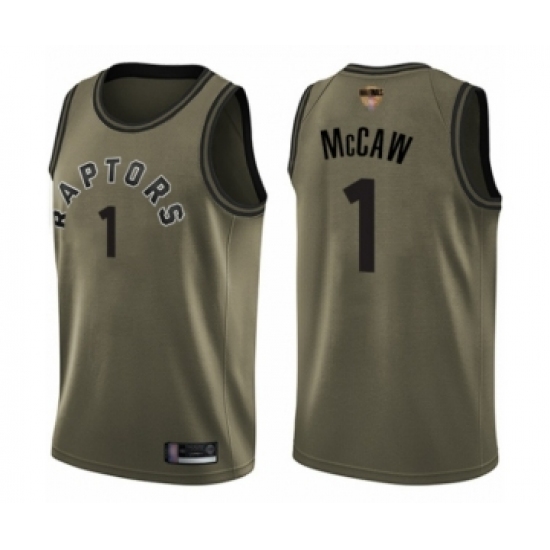 Men's Toronto Raptors #1 Patrick McCaw Swingman Green Salute to Service 2019 Basketball Finals Champions Jersey