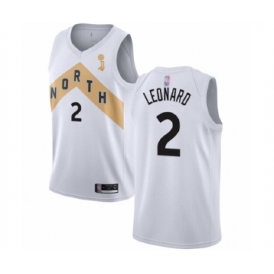 >Men's Toronto Raptors #2 Kawhi Leonard Swingman White 2019 Basketball Finals Champions Jersey - City Edition