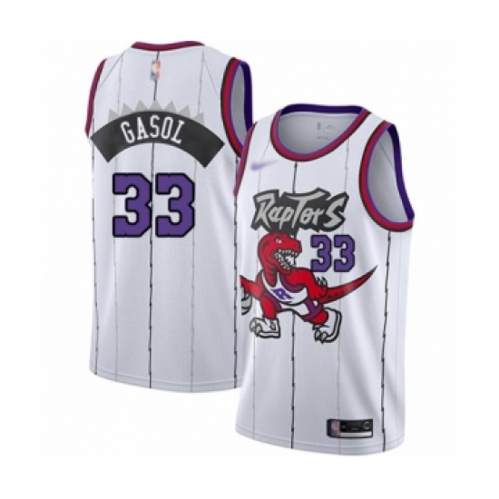 >Men's Toronto Raptors #33 Marc Gasol Authentic White Hardwood Classics Basketball Jersey