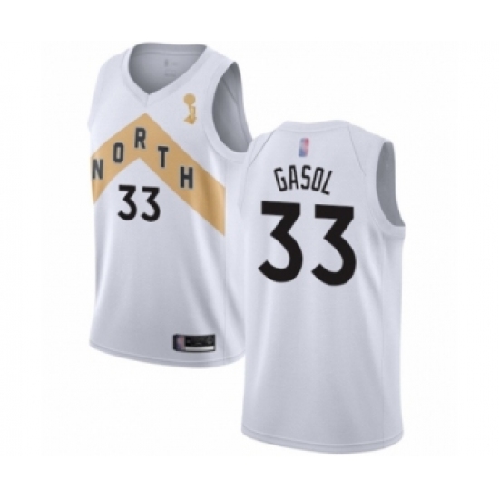 Men's Toronto Raptors #33 Marc Gasol Swingman White 2019 Basketball Finals Champions Jersey - City Edition