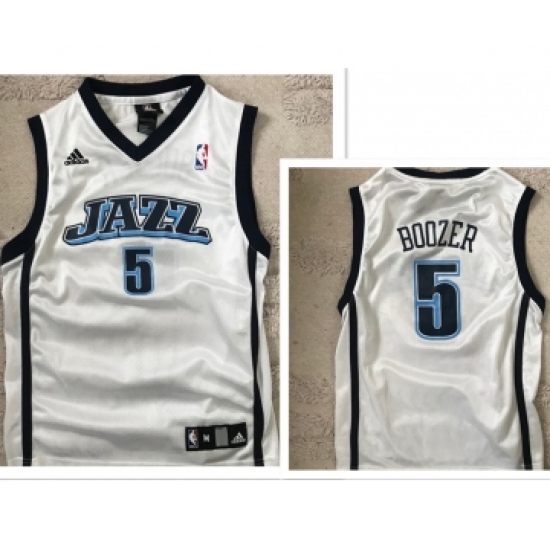 Men's Utah Jazz #5 Carlos Boozer White Adidas Swingman Jersey