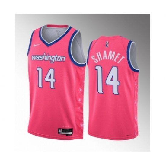 >Men's Washington Wizards #14 Landry Shamet Pink 2023 Draft City Edition Stitched Jersey