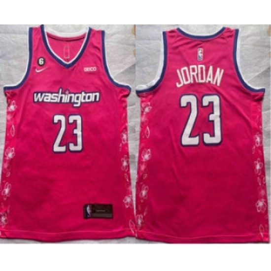 Men's Washington Wizards #23 Michael Jordan 2022 Pink City Edition With 6 Patch Stitched Jersey With Sponsor