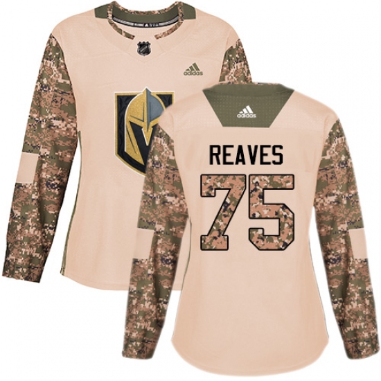 Women's Adidas Vegas Golden Knights #75 Ryan Reaves Authentic Camo Veterans Day Practice NHL Jersey