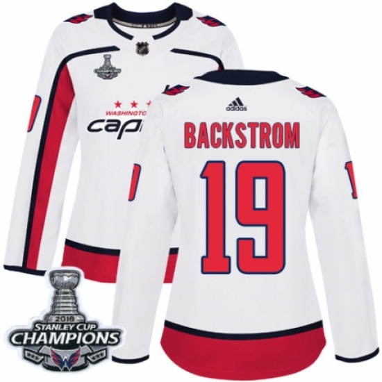 Women's Adidas Washington Capitals #19 Nicklas Backstrom Authentic White Away 2018 Stanley Cup Final Champions NHL Jersey