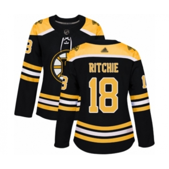 >Women's Boston Bruins #18 Brett Ritchie Authentic Black Home Hockey Jersey