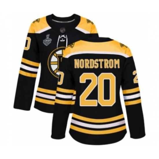 >Women's Boston Bruins #20 Joakim Nordstrom Authentic Black Home 2019 Stanley Cup Final Bound Hockey Jersey