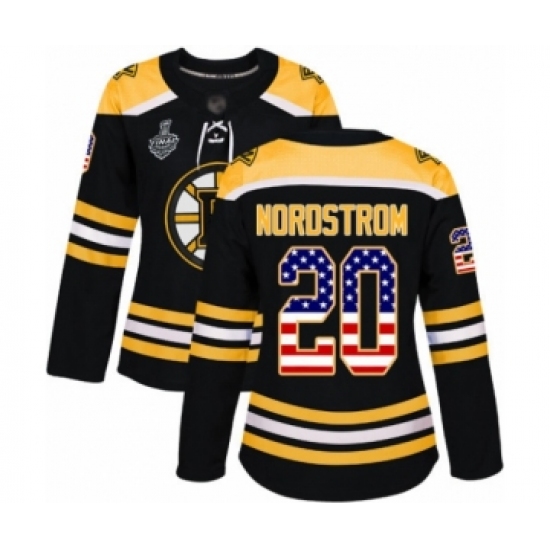 Women's Boston Bruins #20 Joakim Nordstrom Authentic Black USA Flag Fashion 2019 Stanley Cup Final Bound Hockey Jersey