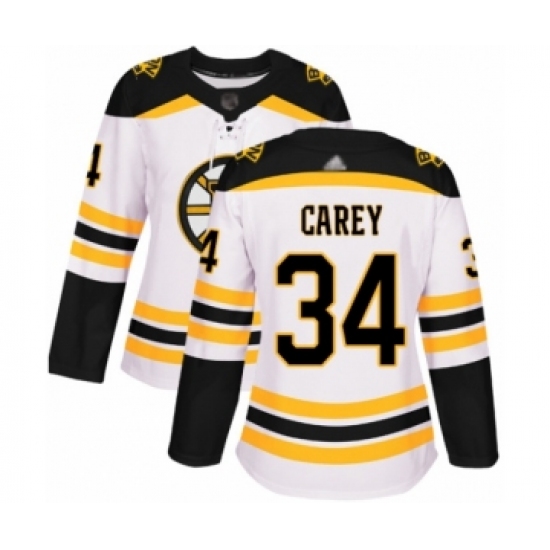 >Women's Boston Bruins #34 Paul Carey Authentic White Away Hockey Jersey