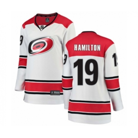 Women's Carolina Hurricanes #19 Dougie Hamilton Authentic White Away Fanatics Branded Breakaway NHL Jersey