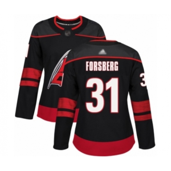 >Women's Carolina Hurricanes #31 Anton Forsberg Authentic Black Alternate Hockey Jersey