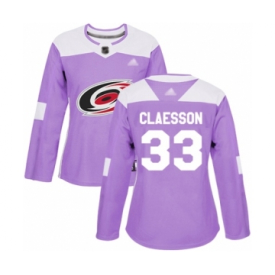 >Women's Carolina Hurricanes #33 Fredrik Claesson Authentic Purple Fights Cancer Practice Hockey Jersey