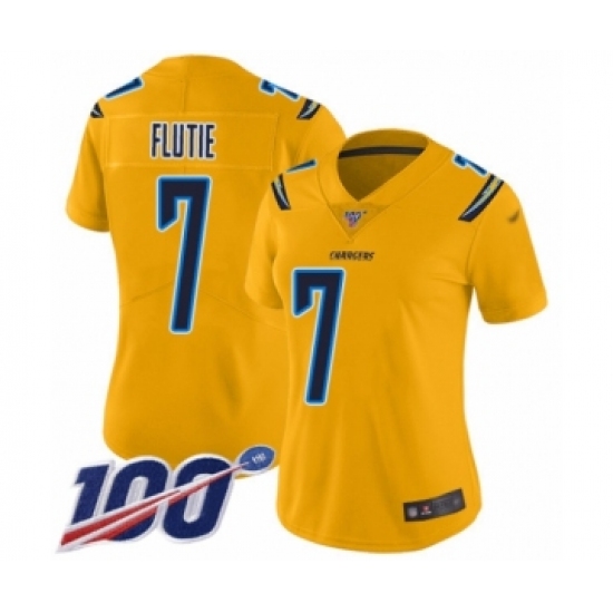 >Women's Los Angeles Chargers #7 Doug Flutie Limited Gold Inverted Legend 100th Season Football Jersey
