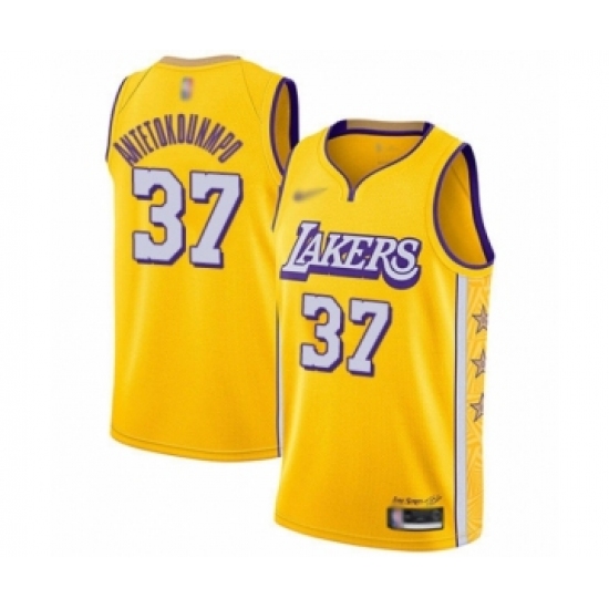 Men's Los Angeles Lakers #37 Kostas Antetokounmpo Swingman Gold 2019-20 City Edition Basketball Jersey