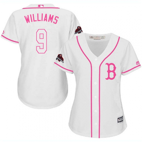 >Women's Majestic Boston Red Sox #9 Ted Williams Authentic White Fashion 2018 World Series Champions MLB Jersey