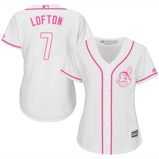 Home>MLB>Cleveland Indians>Kenny Lofton>Women's Majestic Cleveland Indians #7 Kenny Lofton Authentic White Fashion Cool Base MLB Jersey