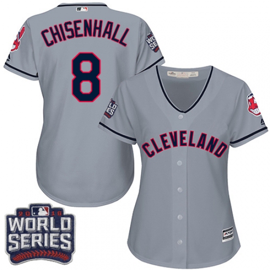 Home>MLB>Cleveland Indians>Lonnie Chisenhall>Women's Majestic Cleveland Indians #8 Lonnie Chisenhall Authentic Grey Road 2016 World Series Bound Cool Base MLB Jersey