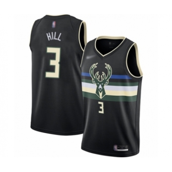 Men's Milwaukee Bucks #3 George Hill Authentic Black Finished Basketball Jersey - Statement Edition