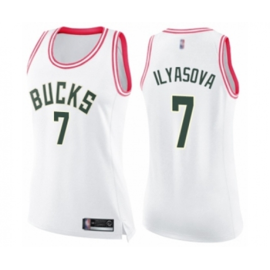 >Women's Milwaukee Bucks #7 Ersan Ilyasova Swingman White Pink Fashion Basketball Jersey