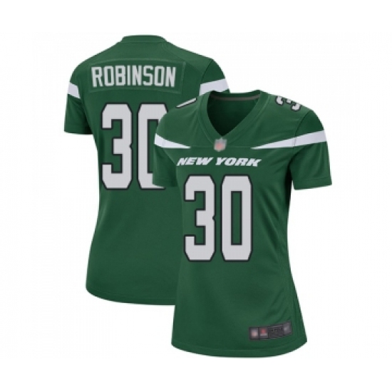 >Women's New York Jets #30 Rashard Robinson Game Green Team Color Football Jersey