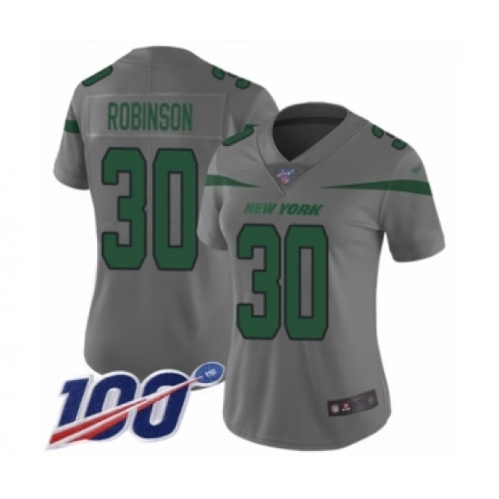 >Women's New York Jets #30 Rashard Robinson Limited Gray Inverted Legend 100th Season Football Jersey