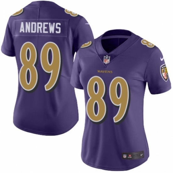 >Women's Nike Baltimore Ravens #89 Mark Andrews Limited Purple Rush Vapor Untouchable NFL Jersey