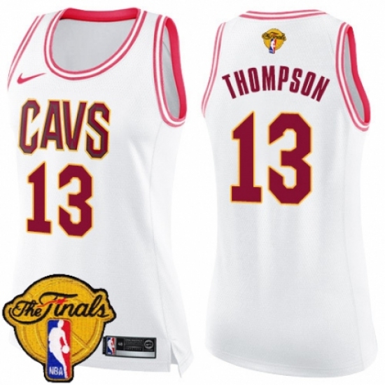 Women's Nike Cleveland Cavaliers #13 Tristan Thompson Swingman White/Pink Fashion 2018 NBA Finals Bound NBA Jersey