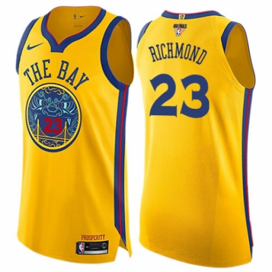 >Women's Nike Golden State Warriors #23 Mitch Richmond Swingman Gold 2018 NBA Finals Bound NBA Jersey - City Edition