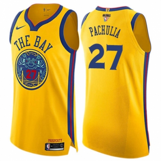 Women's Nike Golden State Warriors #27 Zaza Pachulia Swingman Gold 2018 NBA Finals Bound NBA Jersey - City Edition