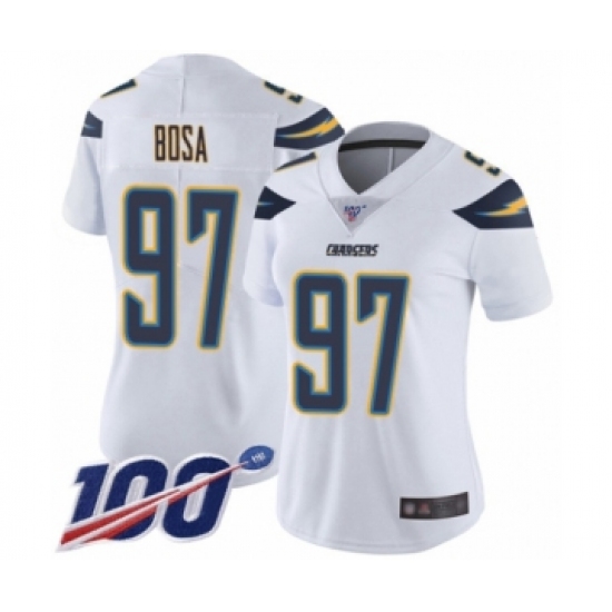 Women's Nike Los Angeles Chargers #97 Joey Bosa White Vapor Untouchable Limited Player 100th Season NFL Jersey