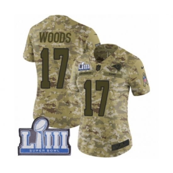 >Women's Nike Los Angeles Rams #17 Robert Woods Limited Camo 2018 Salute to Service Super Bowl LIII Bound NFL Jersey