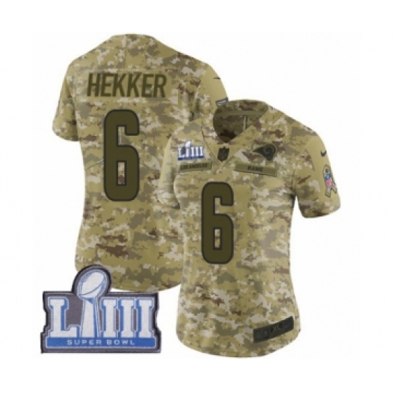 >Women's Nike Los Angeles Rams #6 Johnny Hekker Limited Camo 2018 Salute to Service Super Bowl LIII Bound NFL Jersey