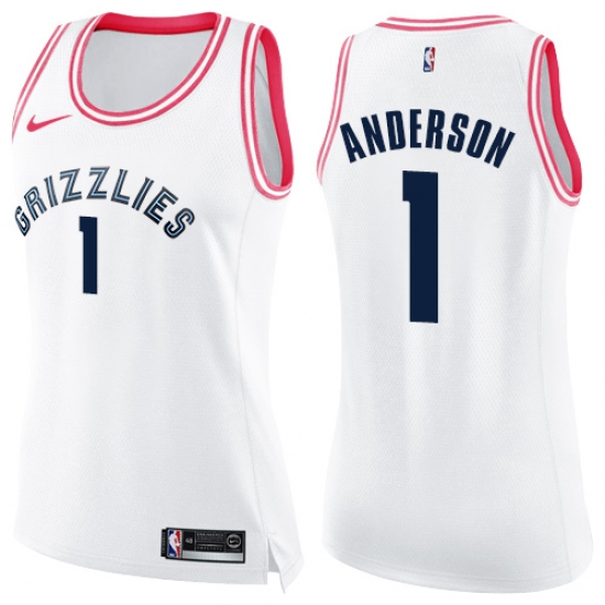>Women's Nike Memphis Grizzlies #1 Kyle Anderson Swingman White Pink Fashion NBA Jersey