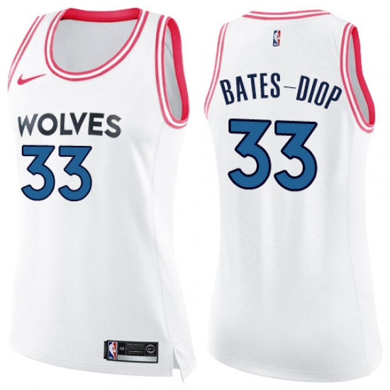 Women's Nike Minnesota Timberwolves #33 Keita Bates-Diop Swingman White Pink Fashion NBA Jersey