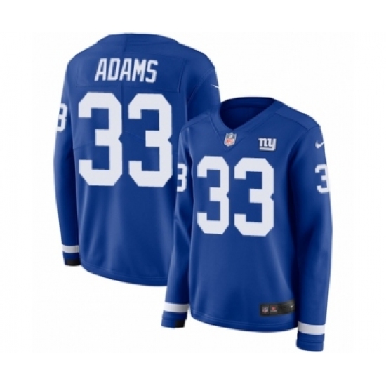 >Women's Nike New York Giants #33 Andrew Adams Limited Royal Blue Therma Long Sleeve NFL Jersey
