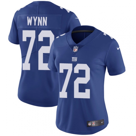 Women's Nike New York Giants #72 Kerry Wynn Royal Blue Team Color Vapor Untouchable Elite Player NFL Jersey