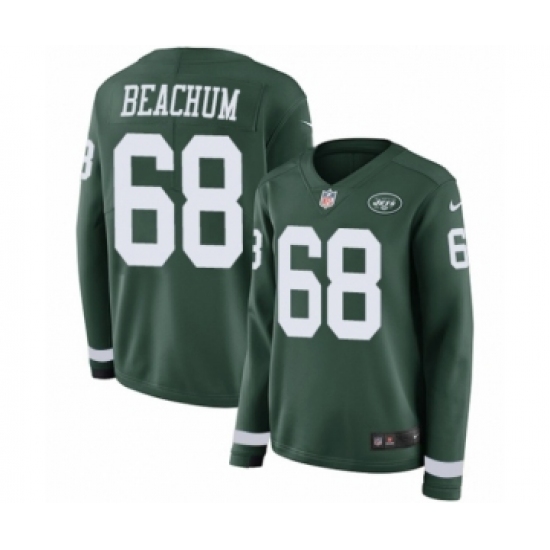 >Women's Nike New York Jets #68 Kelvin Beachum Limited Green Therma Long Sleeve NFL Jersey
