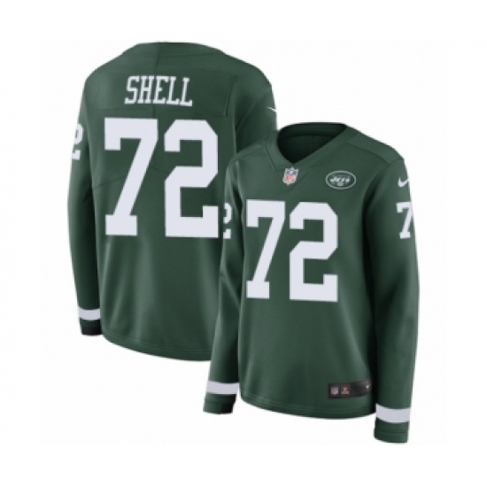 Women's Nike New York Jets #72 Brandon Shell Limited Green Therma Long Sleeve NFL Jersey