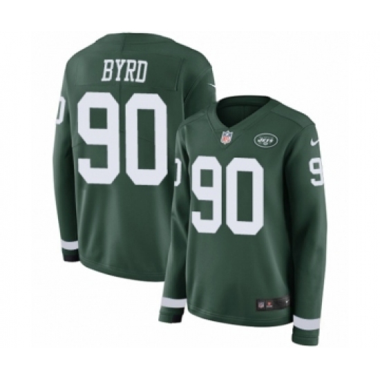 >Women's Nike New York Jets #90 Dennis Byrd Limited Green Therma Long Sleeve NFL Jersey