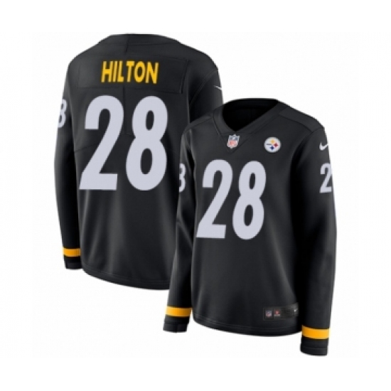 >Women's Nike Pittsburgh Steelers #28 Mike Hilton Limited Black Therma Long Sleeve NFL Jersey