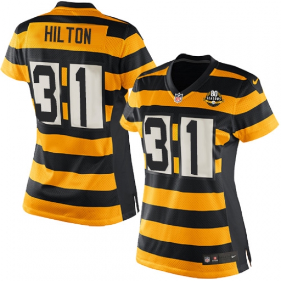 Home>NFL>Pittsburgh Steelers>Mike Hilton>Women's Nike Pittsburgh Steelers #31 Mike Hilton Elite Yellow/Black Alternate 80TH Anniversary Throwback NFL Jersey