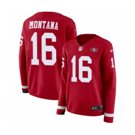 >Women's Nike San Francisco 49ers #16 Joe Montana Limited Red Therma Long Sleeve NFL Jersey