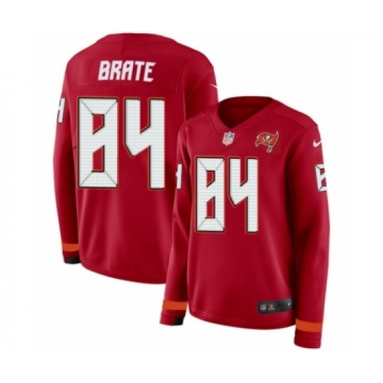 >Women's Nike Tampa Bay Buccaneers #84 Cameron Brate Limited Red Therma Long Sleeve NFL Jersey